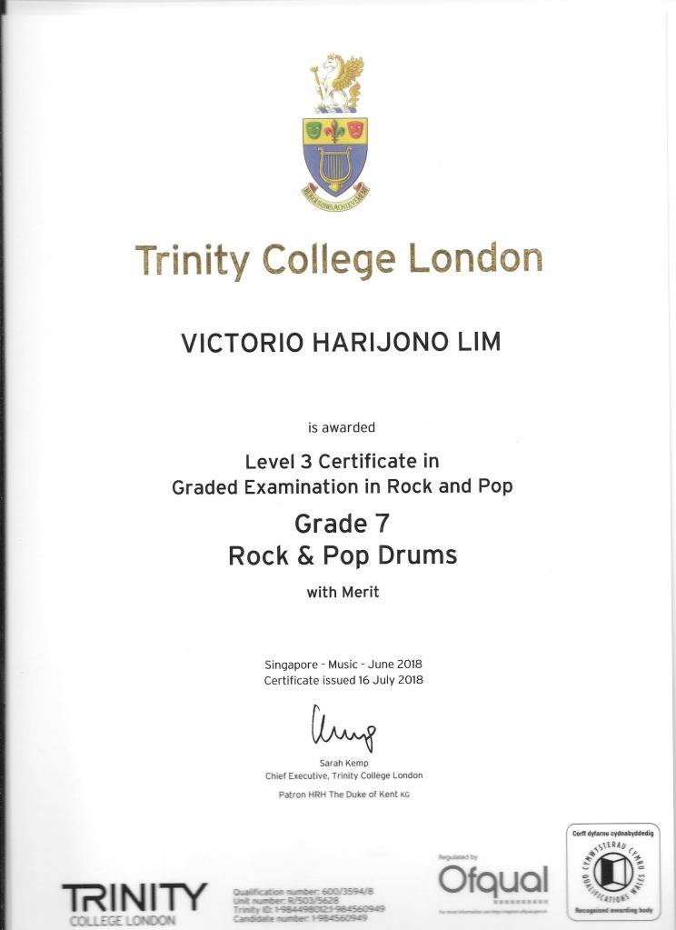 Music qualification: Grade 8 Rockschool Drumkit/Grade 7 Trinity Rock&Pop Drumkit/Grade 2 Trinity Guildhall Drumkit