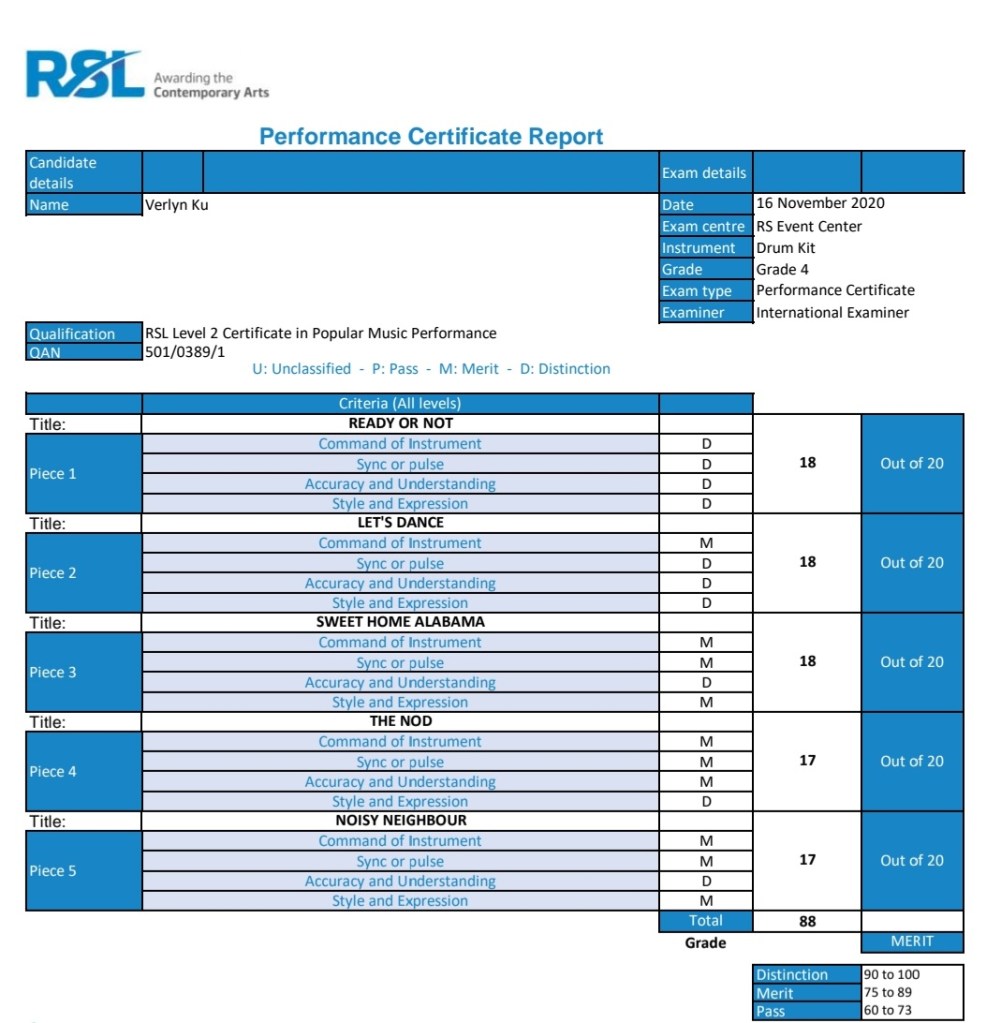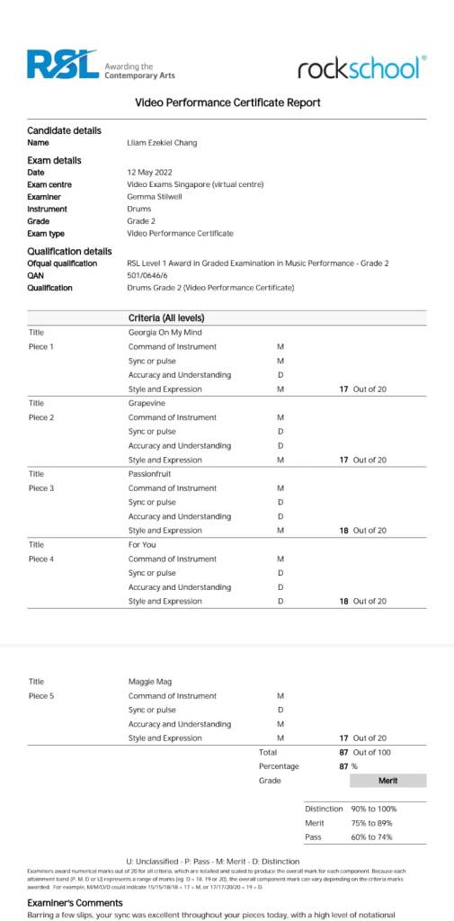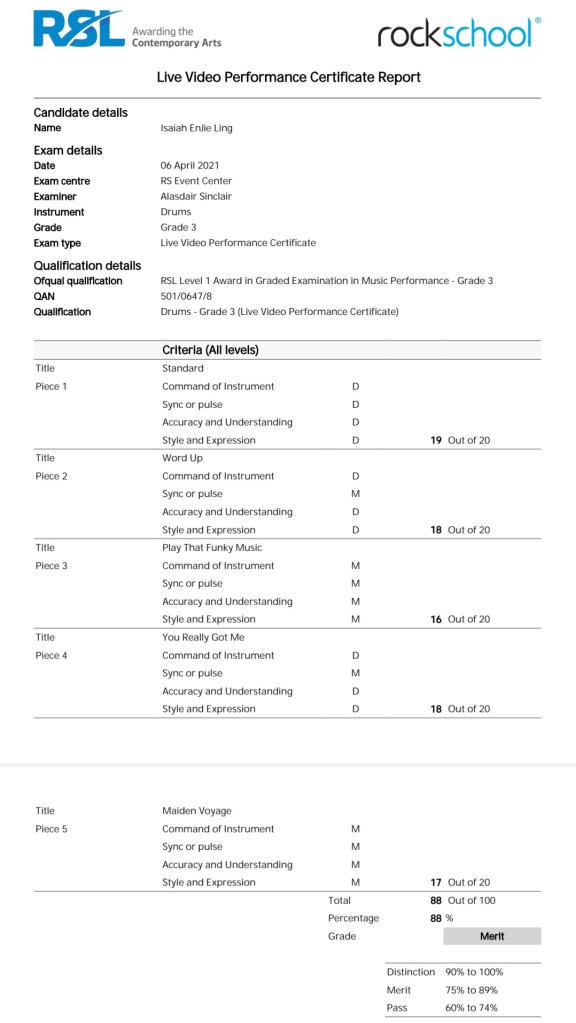 Martin passed his Grade 3 with DistinctionZhan Kun passed his Grade 7 with DistinctionBrandon passed his Grade 1 with DistinctionJonathan passed his Grade 8 with DistinctionRandall passed his Grade 4 with DistinctionJohn passed his Grade 5 with Distinction